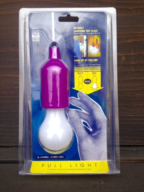 ひもで上から吊るして、点ける時は下に引っ張るだけの電球型ライト。